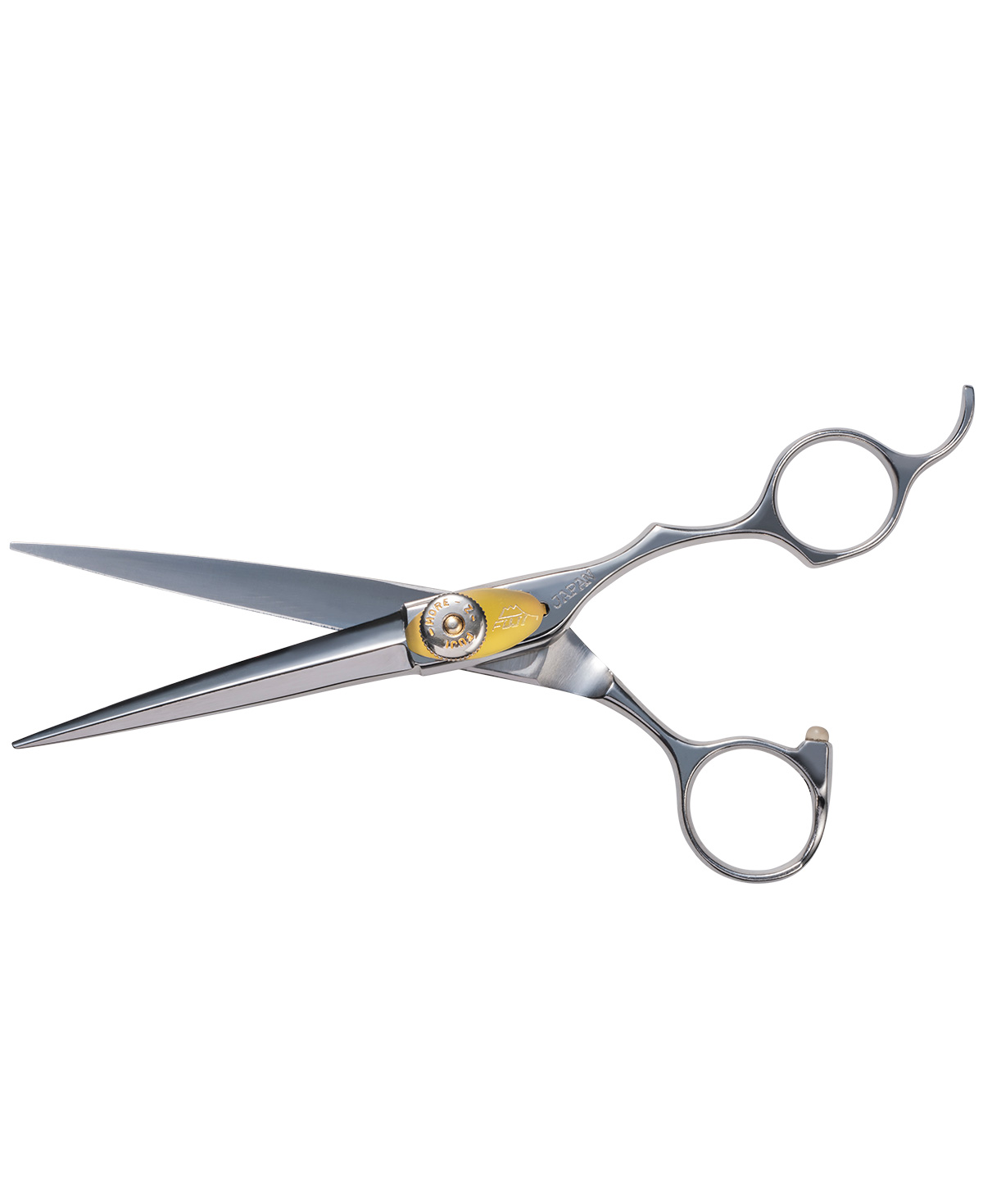 Aus extrem stabilem Stahl (Takefu CS1), die Blätter sind von Hand geformt. Diese Scheren findet man in den Händen der besten Artisten auf der ganzen Welt. Justierbare Mittelschrauben.